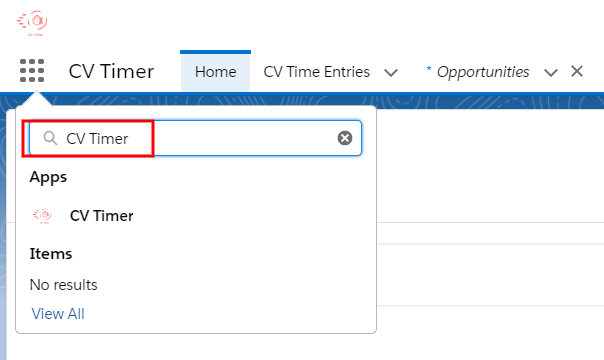 From App Launcher, Enter CV Timer and click on the CV Timer to open the app. Then Click Home Tab to access the CV Timer.