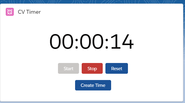 Once you are done with the work or whenever you want to log your time entry in the system. Click on the Create Time button from the CV Timer Component.