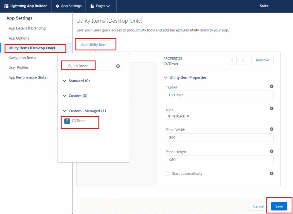 To Add CV Timer Utility Bar to any other Lightning App follow these steps