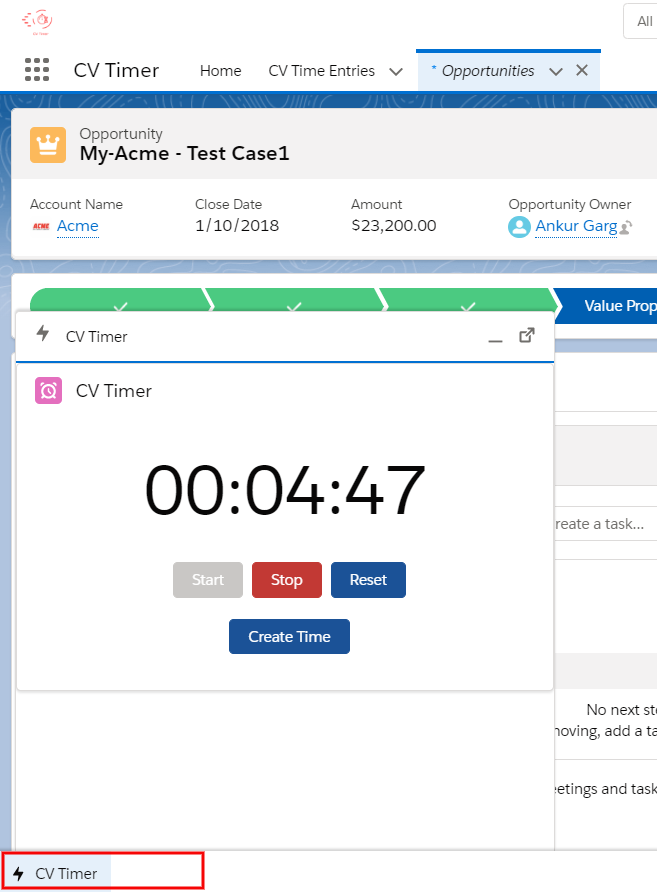 If these are some of the questions you are struggling with, CV Timer is here to your rescue. CV Timer will help you to keep track of your time by starting the clock and log that Time with your deal or opportunity. This app not only helps you to manage your time efficiently but allows your managers to see your performance based on the time you capture on any opportunity by intuitive Time tracking. CV Timer can be added to the Homepage and Utility Bar of any application. We are providing you with the pre-built App having CV Timer Component added So, you can start using the app without any hassle.