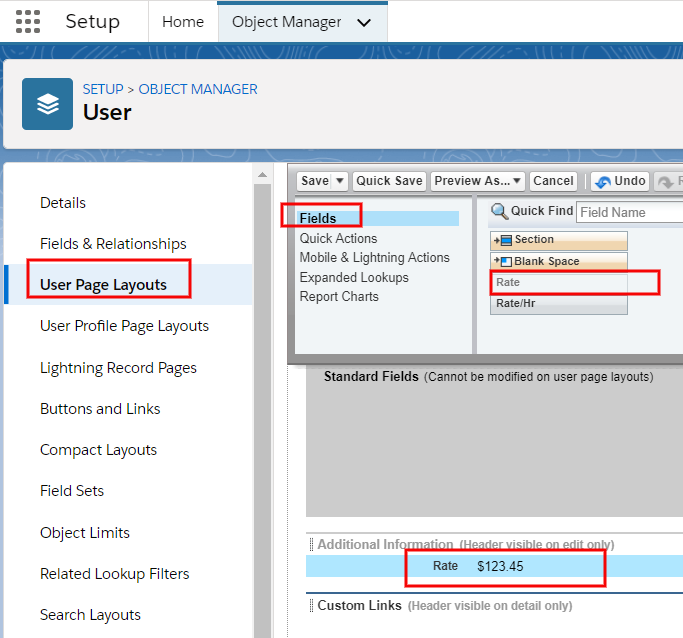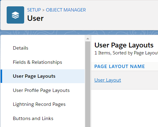 Click on User Page Layouts from the left panel and click on User layout to Edit.